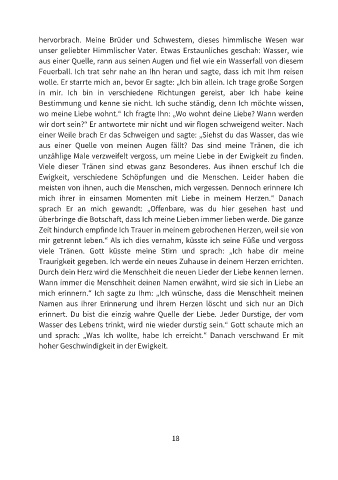 Wasser des Lebens trinkt, wird nie wieder durstig sein.“ Gott schaute mich an
