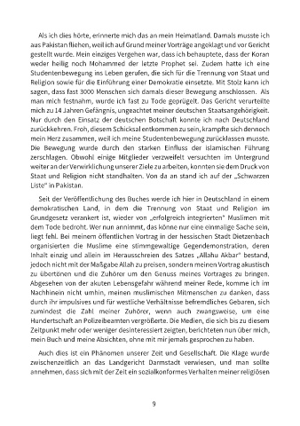 aus Pakistan fliehen, weil ich auf Grund meiner Vorträge angeklagt und vor Gericht