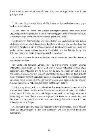 16. Ich wollte absolut, dass alle Religionen dem Islam folgen. Diese Religion