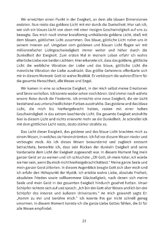 Das Licht dieser Ewigkeit, das goldene und das blaue Licht brachten mich zu